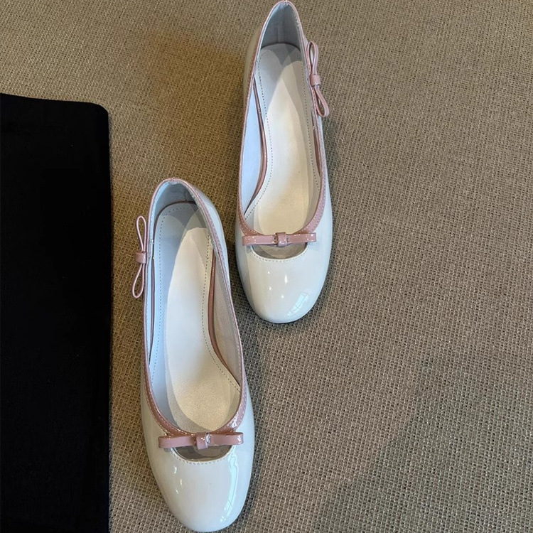 羊皮版 ~ フランスの優しい蝶結びの本革の小さい靴の女性の足は丸い頭を踏んでスカートのメアリー珍靴の女性を配合します。