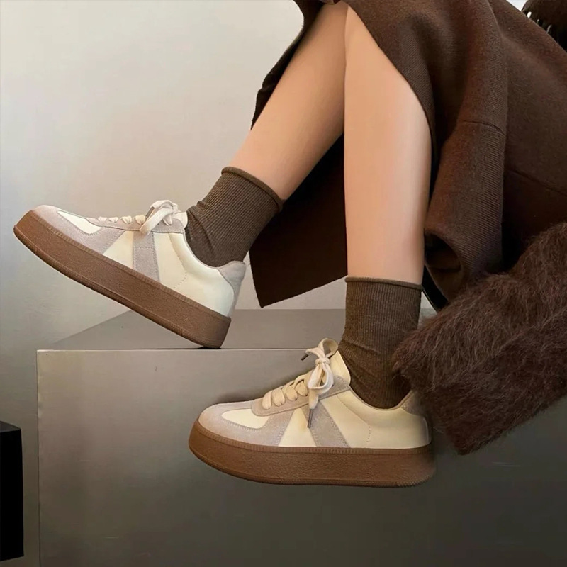 本革版 ~ 徳訓靴女性カジュアル靴百合白靴厚い底高くなります。