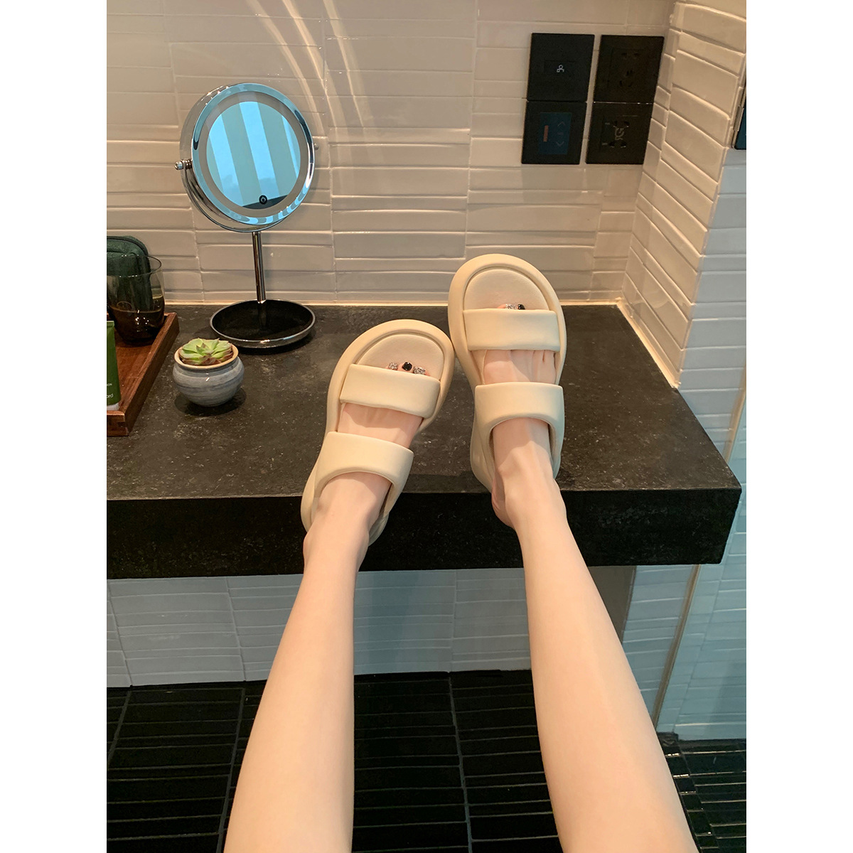 羊皮のブドウのお母さんの丸い頭の厚い底の広い辺の双一字はスリッパの女性の厚い底の柔らかい弾を持って糞を踏んで感じます。