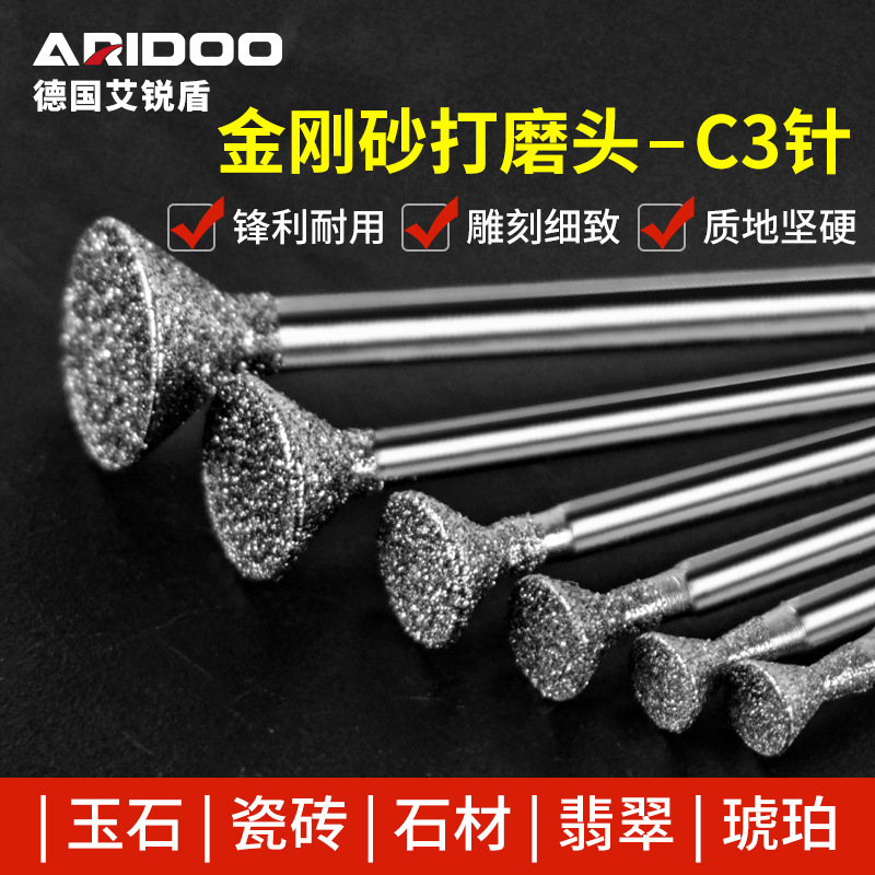 玉彫刻工具研削ヘッドc 3針ラッパヘッド電動金刚砂専用翡翠玉電気ミル彫刻針卸売り