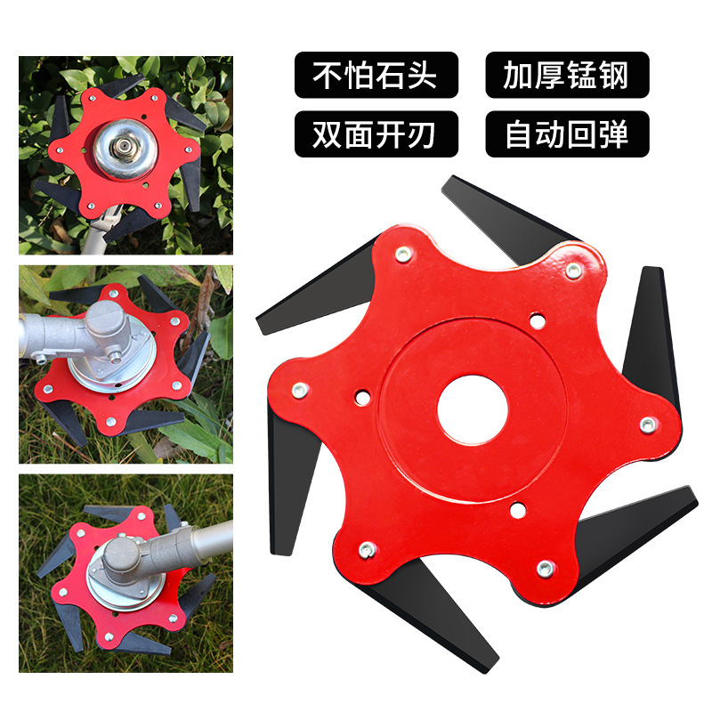 ガソリンエンジンの芝刈り機の六葉刀は草の頭の猛鋼を打って厚い園林の草刈り機の草刈り機の草刈りの通用の部品を打ちます。