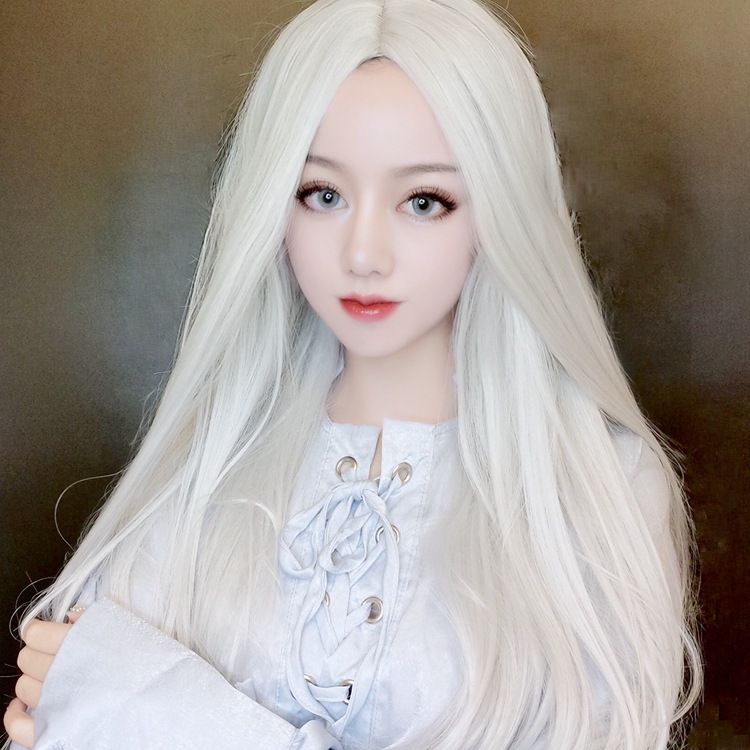 かつらの女性の中で長い髪のまっすぐな髪がリアルです。