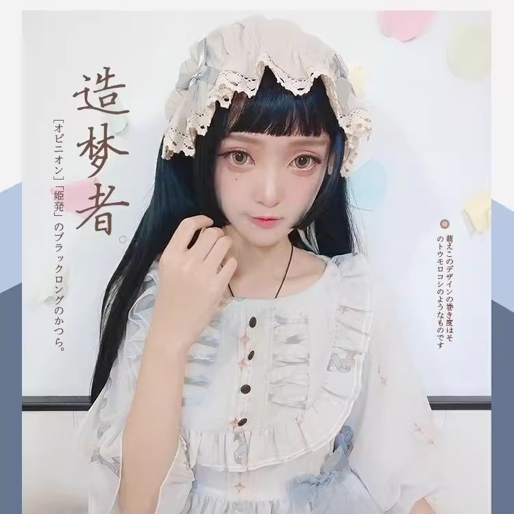 男女共通かつら黒ロングストレートcos姫髪ロング巻き偽娘変装ユニバーサルアニメコスプレ偽毛