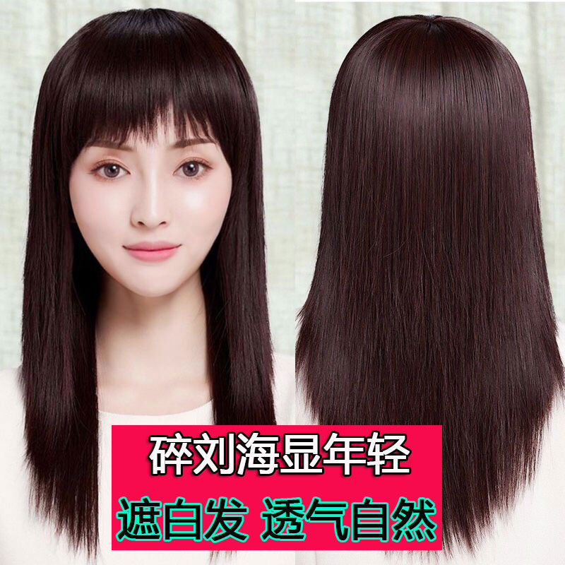 かつらの女性の中で長い髪の空気の前髪の砕毛はリアルで自然に顔を修理します。