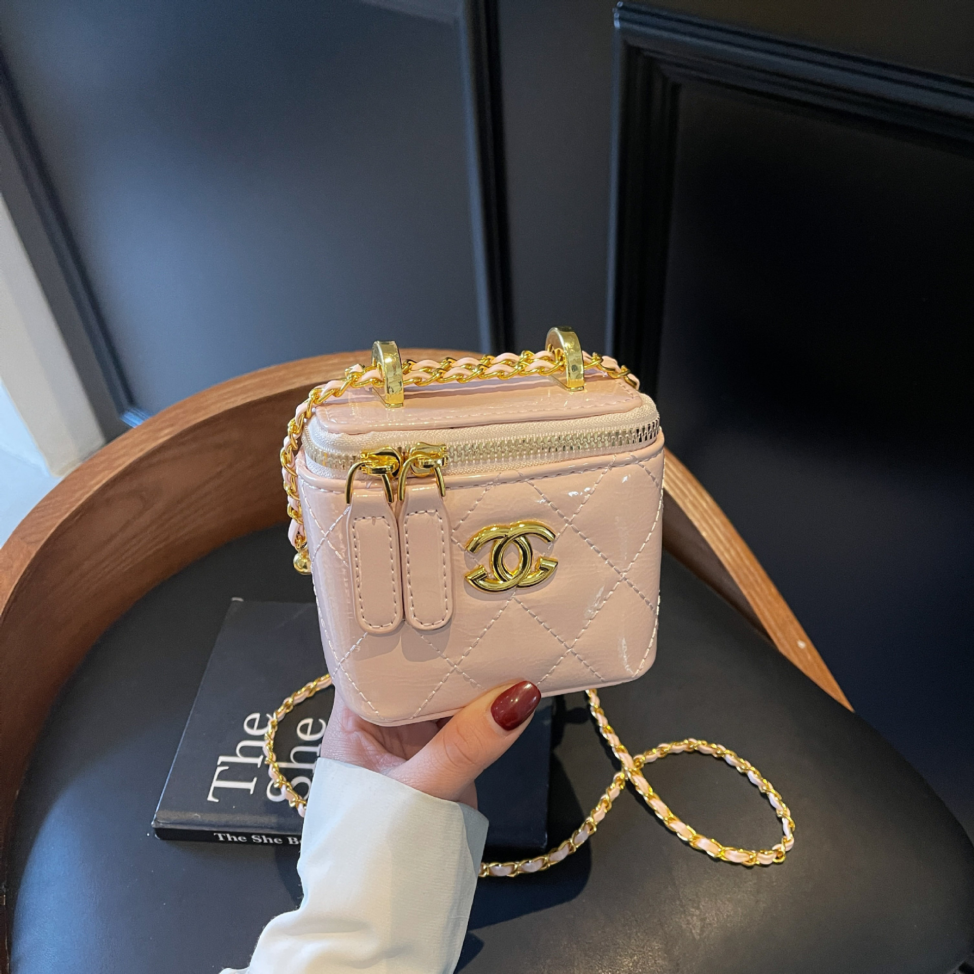 軽奢ミウ風スクエアバッグ ヴィンテージチェーンハンドバッグ レディース カジュアルファッション シンプルショルダーバッグ 斜めがけボックスバッグ