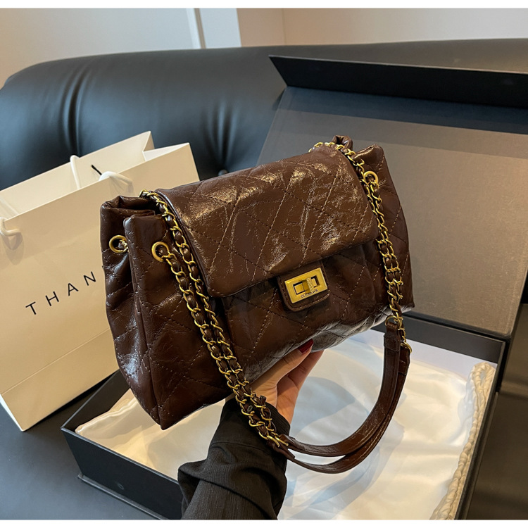 高級感のある小香風菱格チェーンの手提げケースバッグ女性の新型ファッション洋風化粧バッグシングル肩斜めがけバッグ