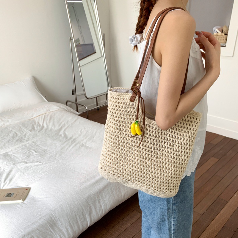 ビーチホリデー織りトートバッグ女性用 2025 新しいトレンディな多用途ハイエンド手織りポータブルショルダーバッグ