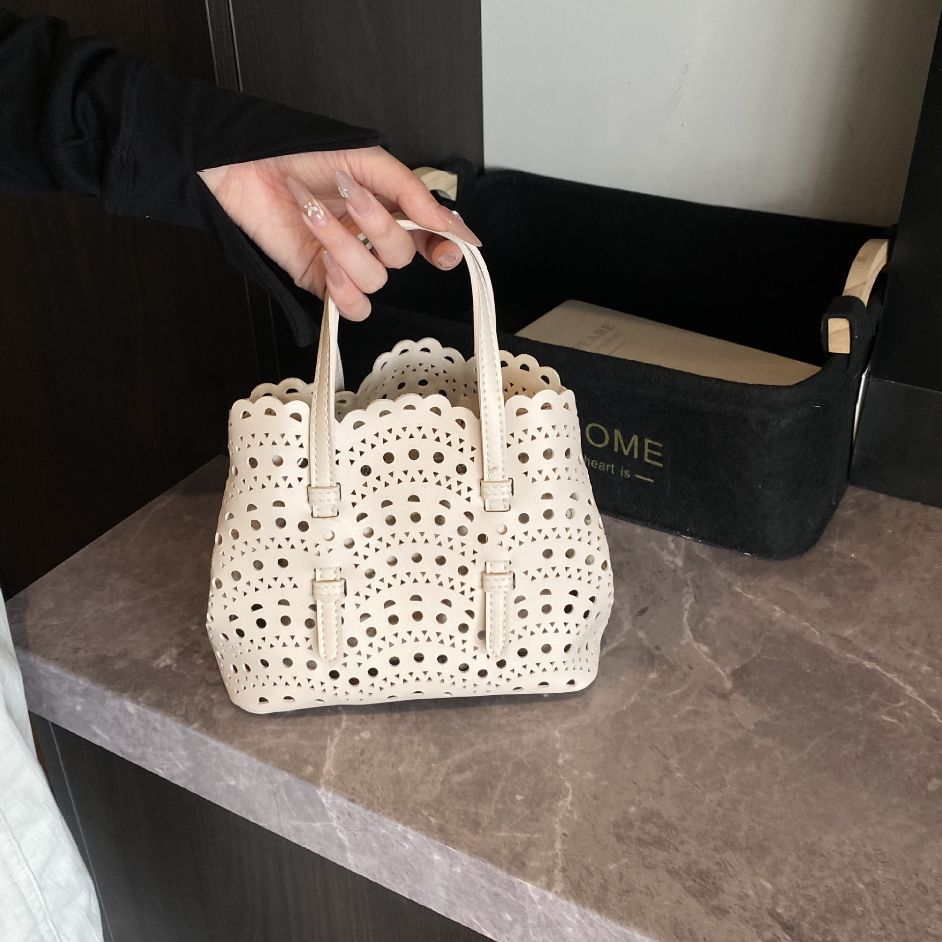 レディースバッグ ウェーブ中空ハンドバッグ 新しいレーザーホールトートバッグ ニッチクロスボディバッグ 大容量ショルダークロスボディバッグ