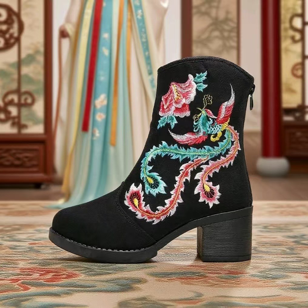 単靴/夏靴刺繍ハイヒール刺繍布靴刺繍靴ショートブーツハイヒール女性靴