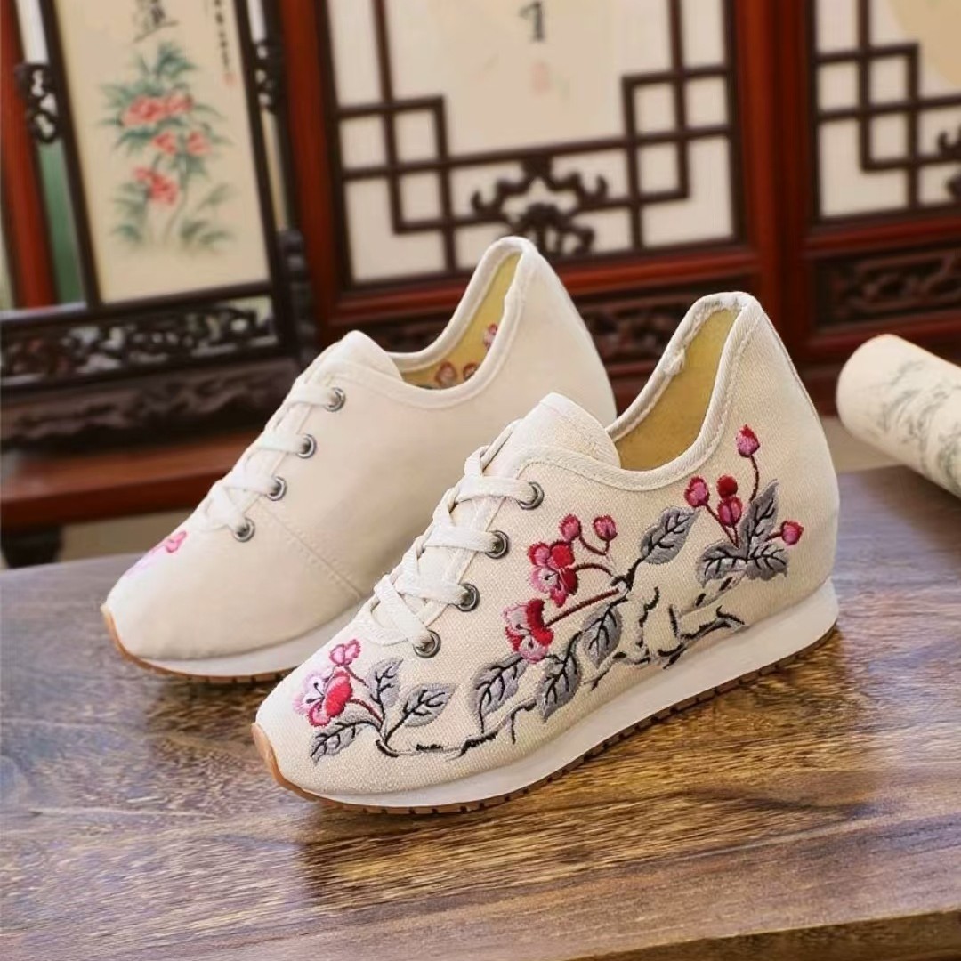 旅行靴の運動靴の秋冬のレジャーの散歩靴のひもの刺繍の布の靴の中で高くなる女性の靴