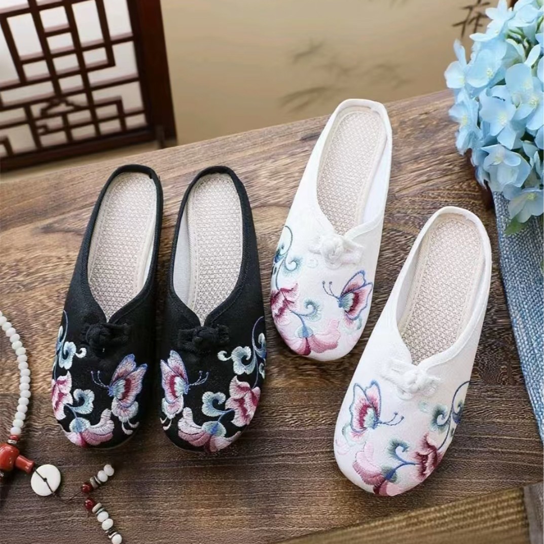 スリッパの夏の新型の刺繍の布の靴の女性の柔らかい底の復古の盤は刺繍のスリッパの古風な漢服の靴を掛けます。