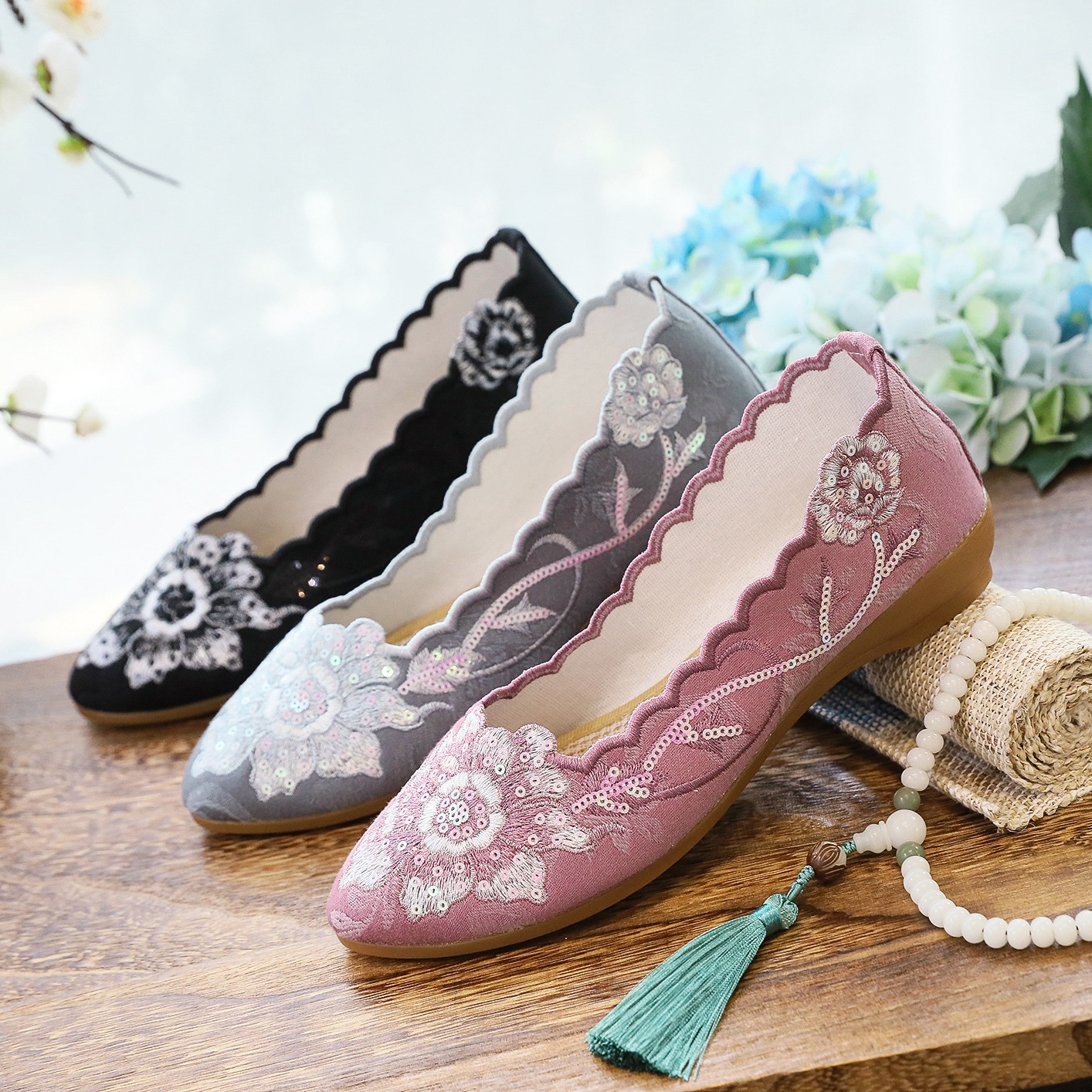 平底靴牛筋底ジャカード綿立体刺繍花布靴ビーズ刺繍春夏タイプ女性靴