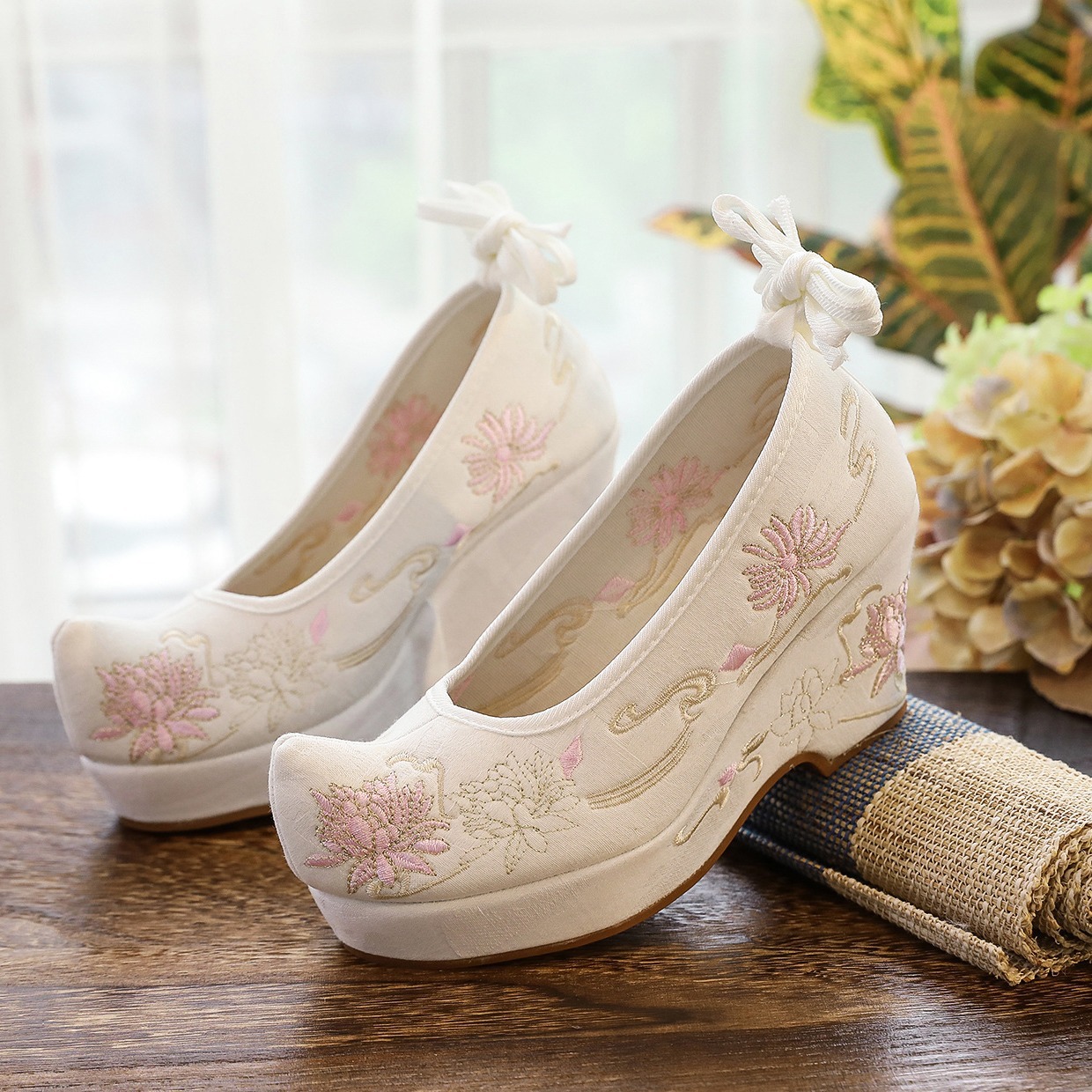 弓靴漢服靴8センチハイヒール女性古風時代刺繍布靴国風単靴