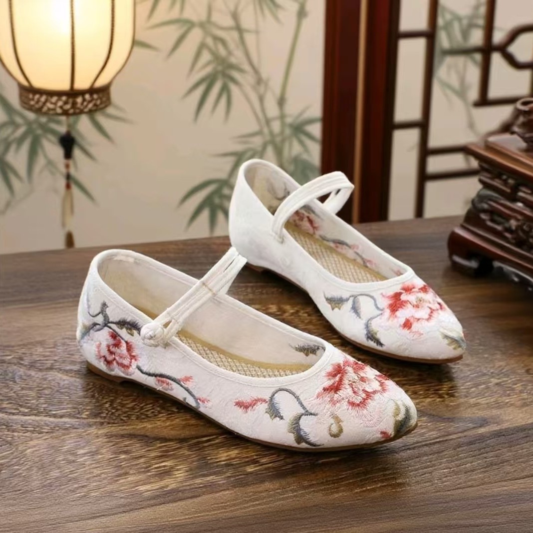 尖った靴の春と秋の刺繍の布の靴の民族風の女性の靴のチャイナドレスの靴の代理