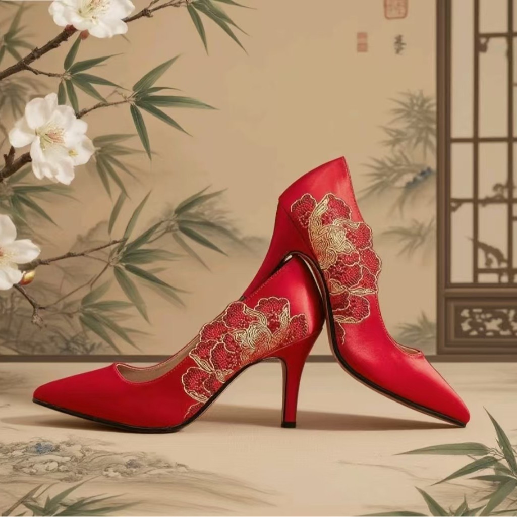 ハイヒールの花嫁の靴の細い靴と先の先の種を打って秀禾の刺繍の布の靴の女性の靴を刺繍します。