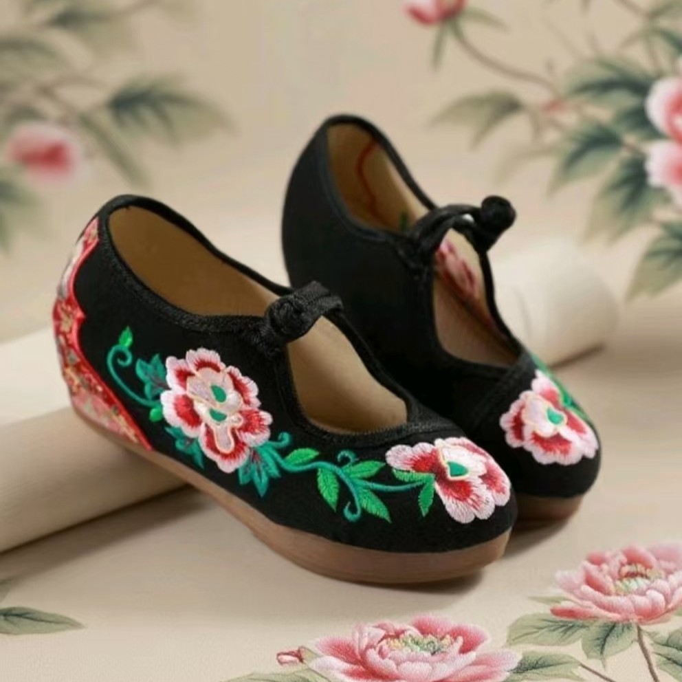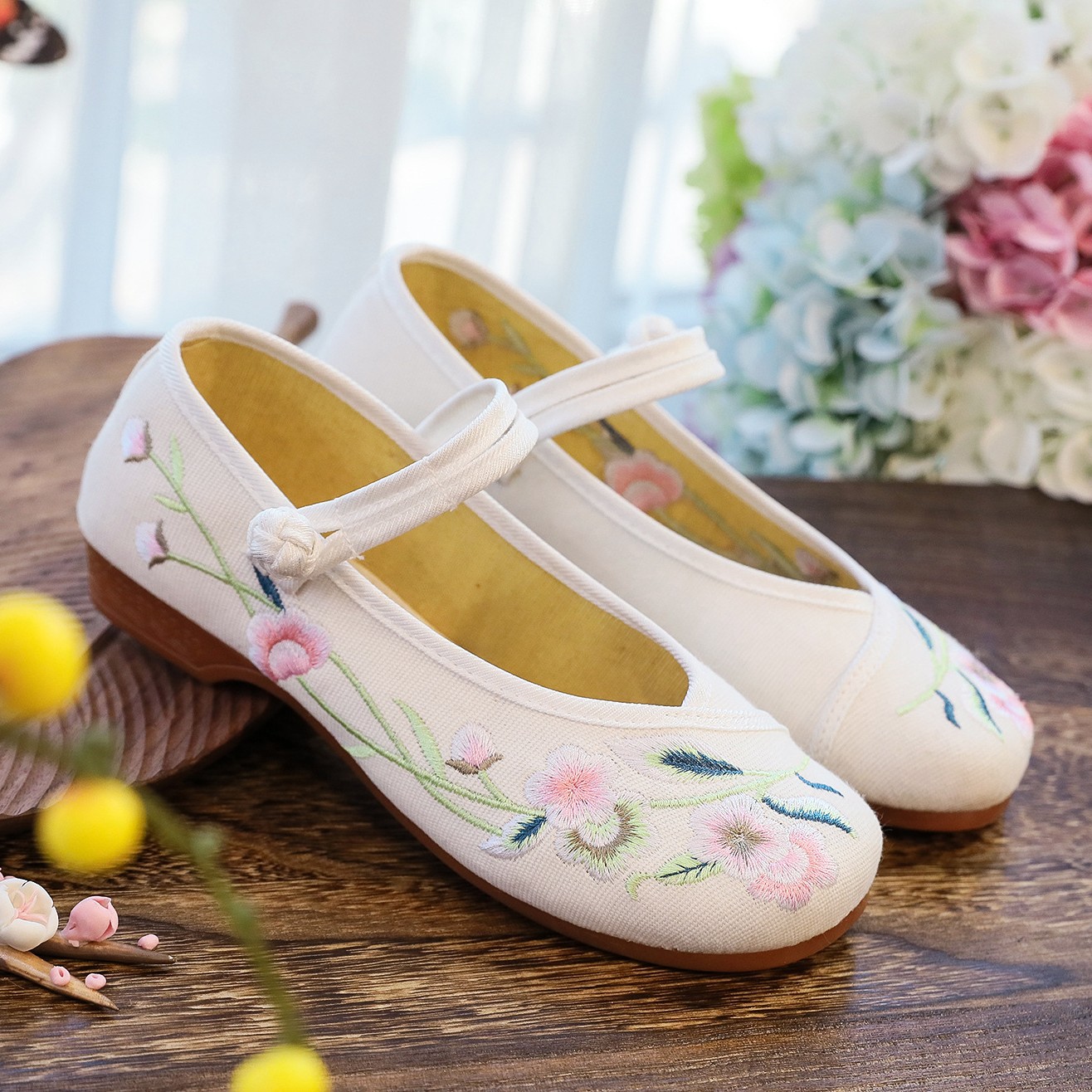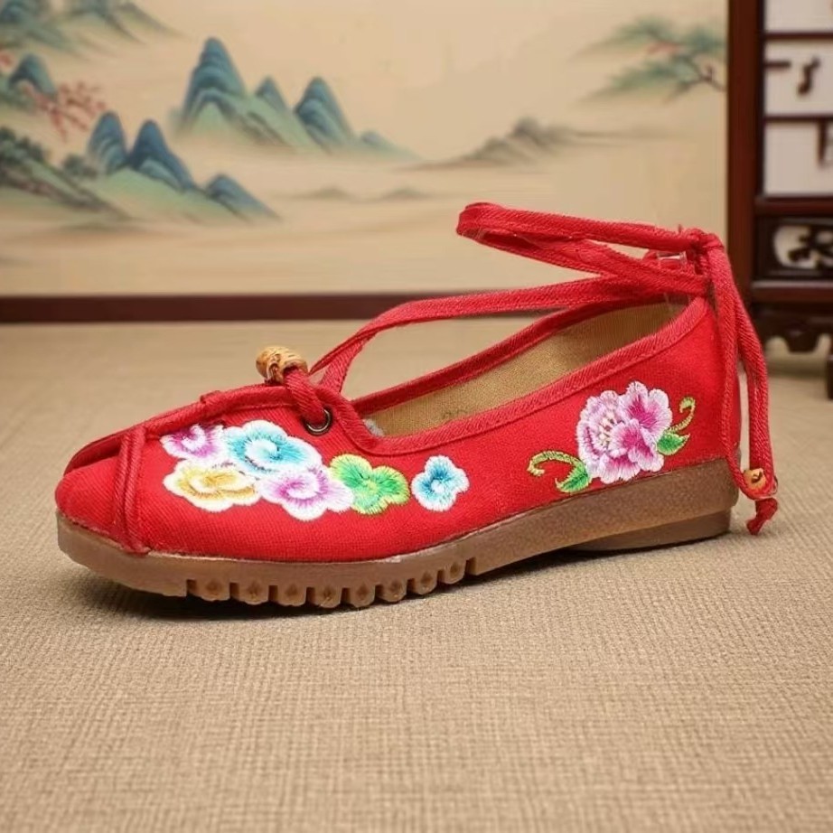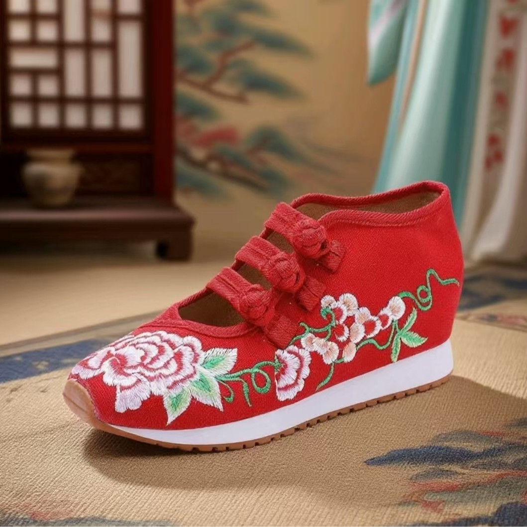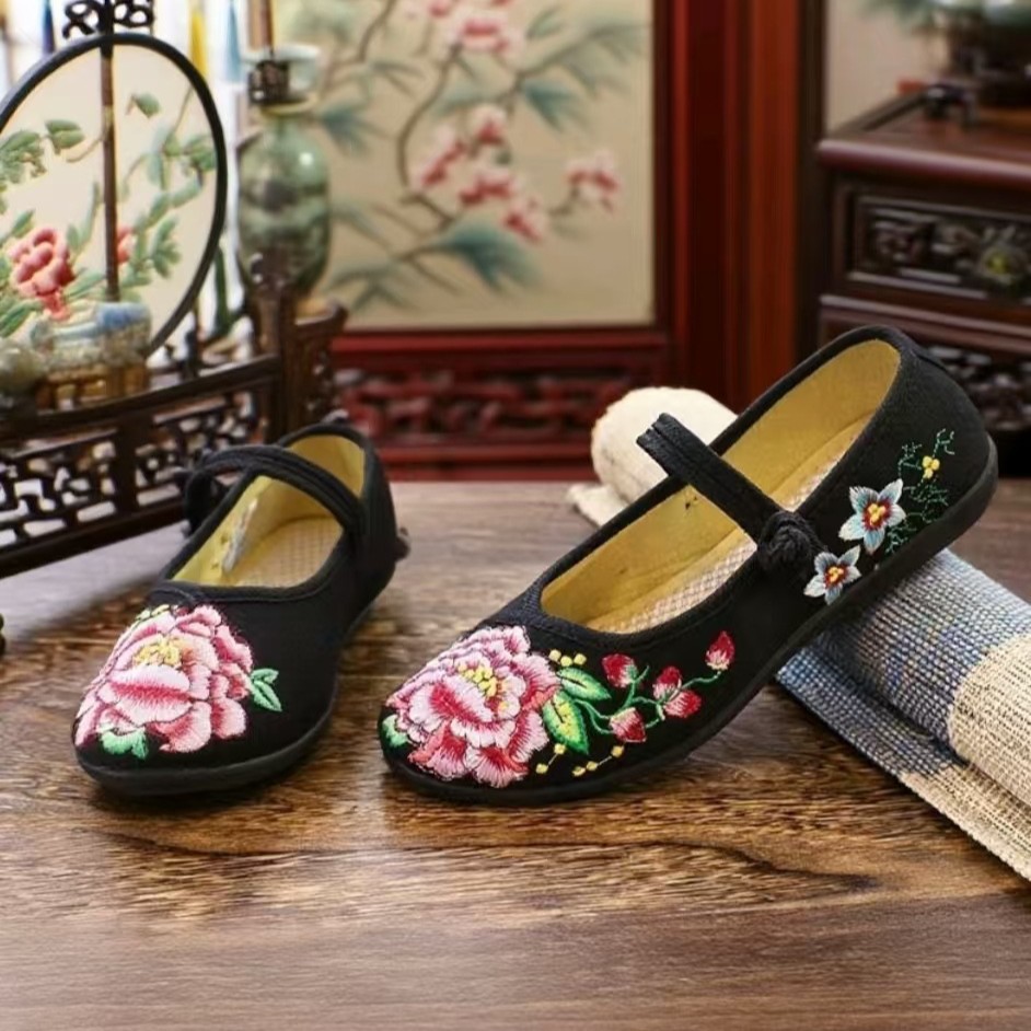旅行靴刺繍布靴運動靴女性靴牡丹刺繍花レトロ盤バックル民族風刺繍靴