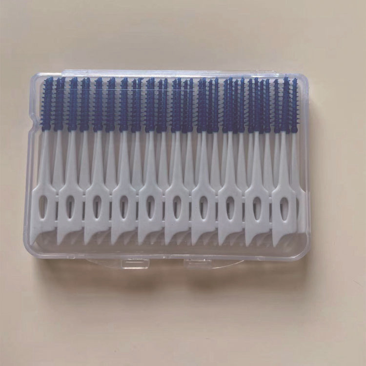 40本の箱入り青緑混色弾性マッサージ歯茎歯間ブラシ歯間ブラシ歯茎ブラシ
