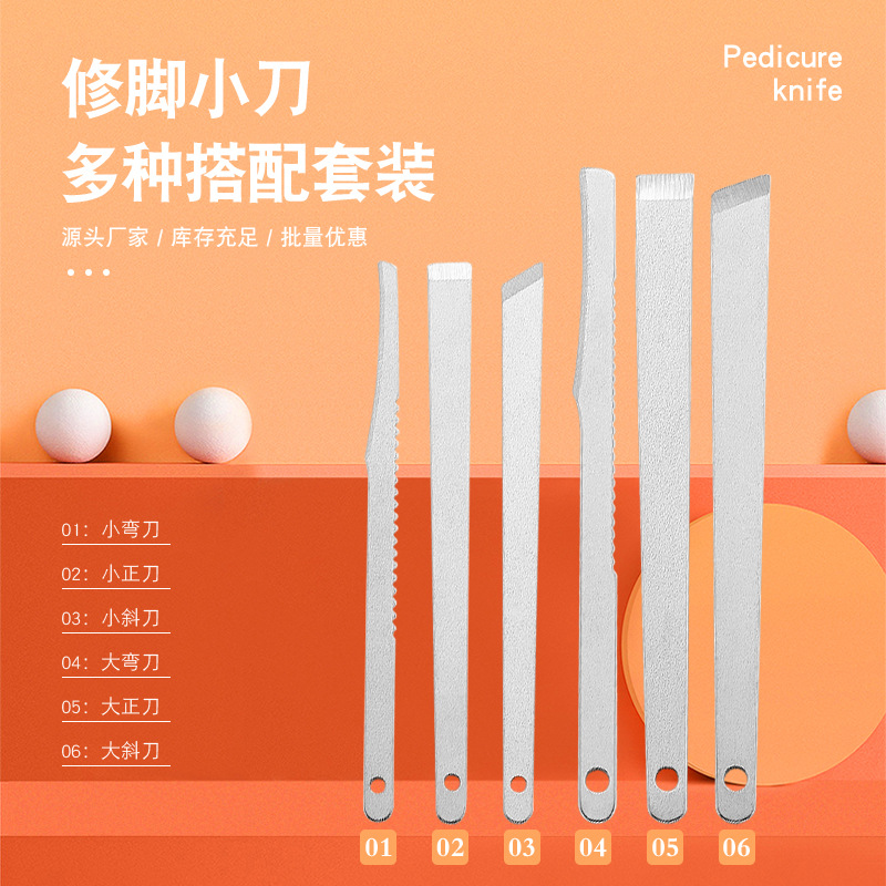 メーカー卸売りの起爆金は繭工具ステンレスの足を修理するナイフの5セットの揚州の3本のナイフの爪を修理するセットに行きます。