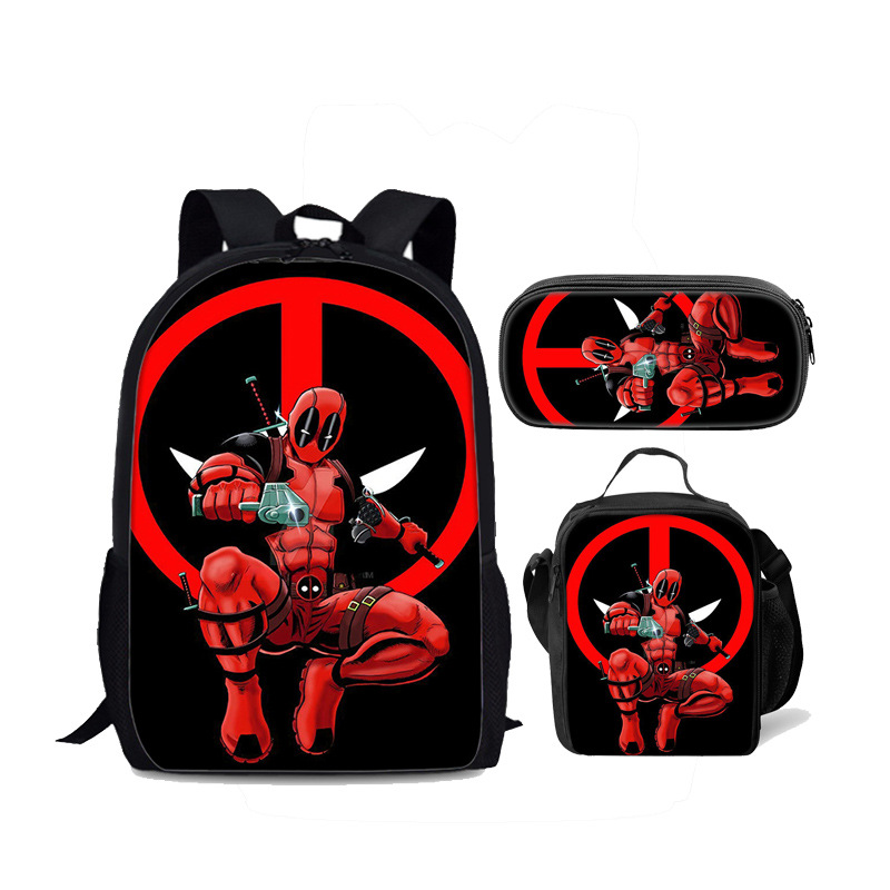 卸売り死侍小中学生かばん食包三点セットDeadpool子供用リュックサックセットセット