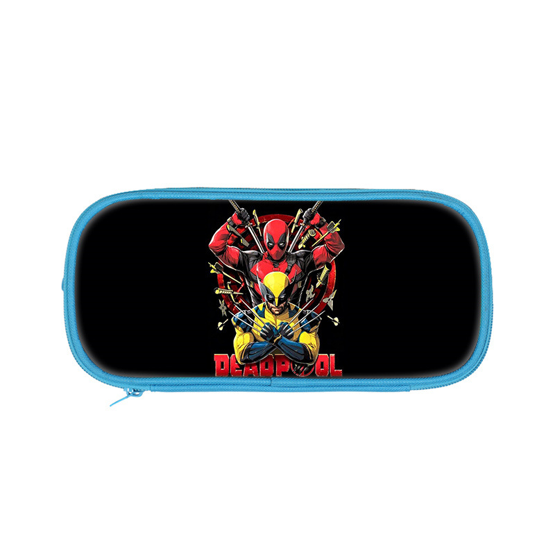 クロスボーダー卸売死侍プリント二重ペンバッグDeadpool学生ブルー収納文房具バッグ鉛筆バッグ