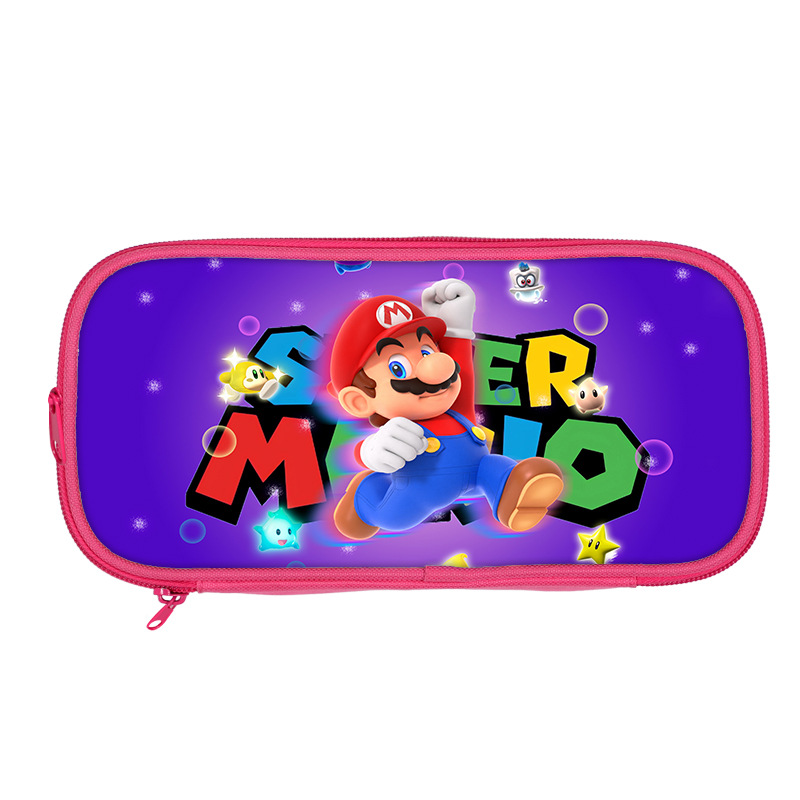 スーパーマリオ子供二重ペン袋マリオグッズピンク学生文房具収納袋鉛筆バッグ
