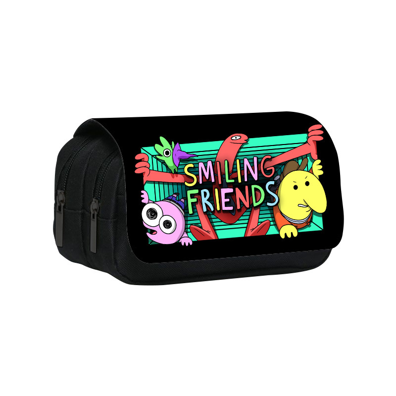 スマイリンクライフプリント二重筆袋漫画笑顔友達小中学生児童鉛筆文房具袋
