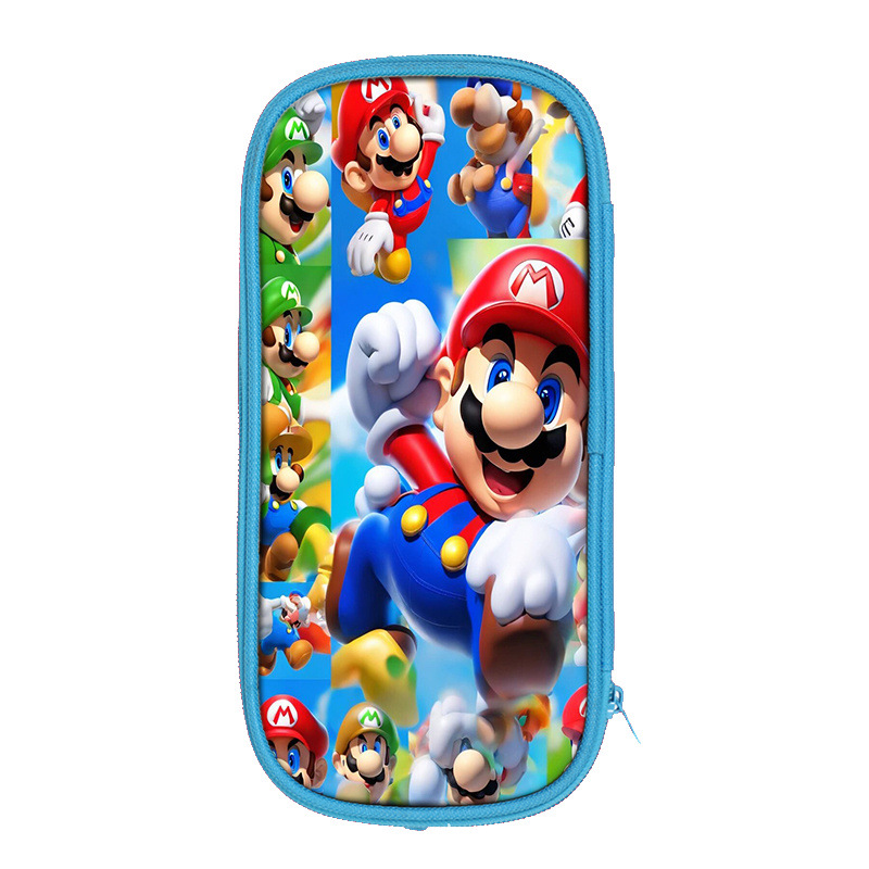 マリオの学生の二重のペンの袋の子供の青い収納の文房具の袋のマリオの周辺の鉛筆の包みは代行することができます。