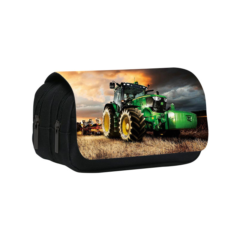 2024国境を越えた新型トラクタープリント二重ペン袋tractor小中学生鉛筆文房具収納袋