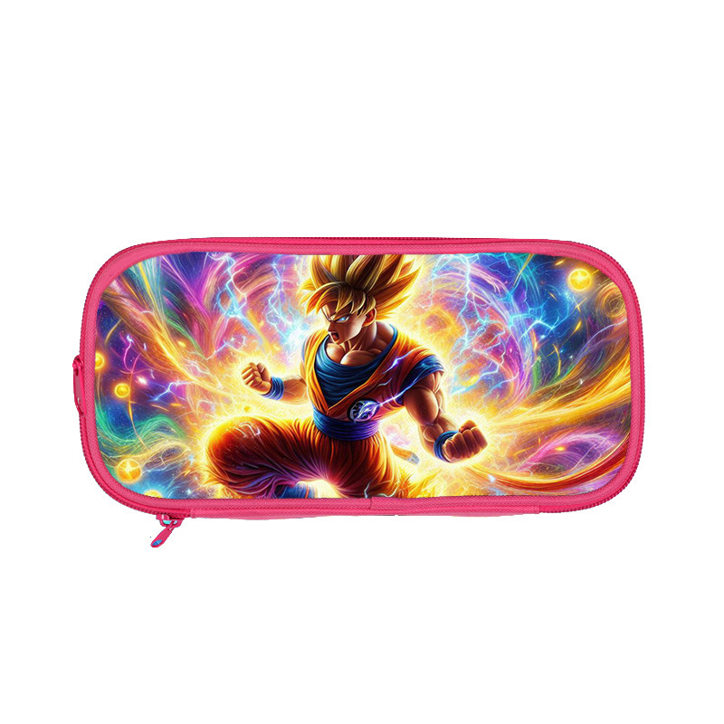 日漫七龍珠プリント二重筆袋Dragon Bal小中学生ブルーピンク大容量文房具袋