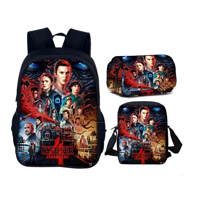 ストレンジャーシングス学生フル版ペンバッグカバンスリーピース怪奇物语16インチリュックサックセット