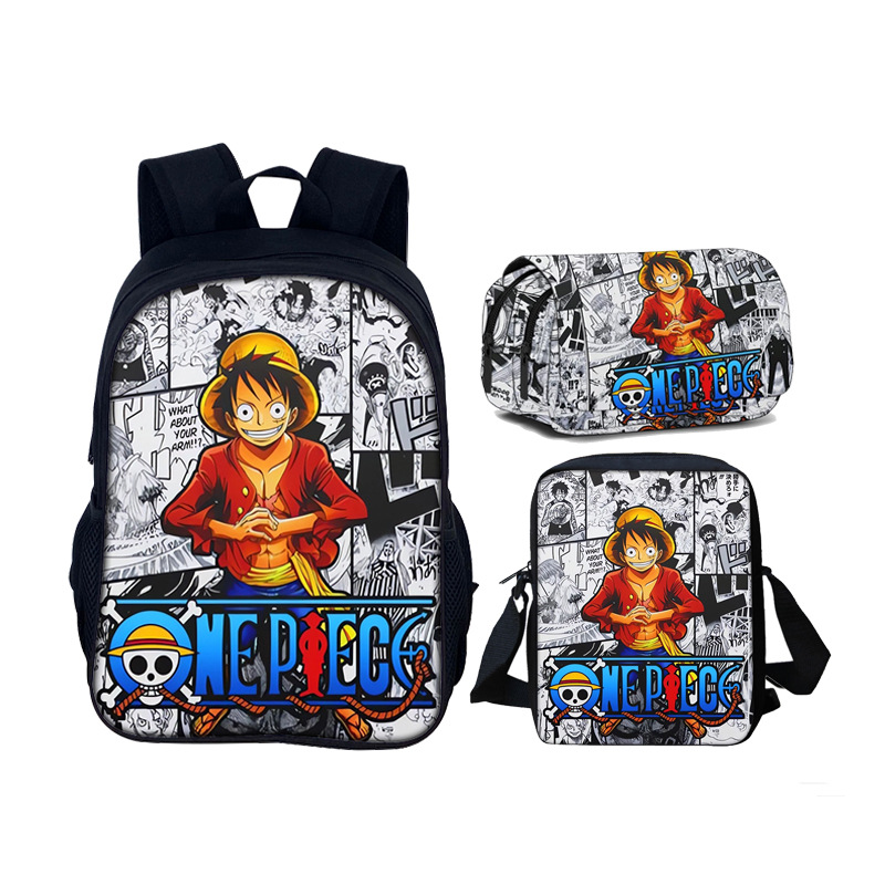 Oneピース小中学生フルバージョン筆袋かばん三点セットワンピースリュックサックフルプリントペンシルセット