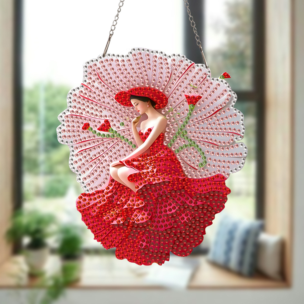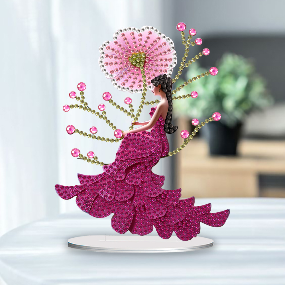 ダイヤモンドはピンクの花の赤いスカートの娘のアクリルの掛け画の明るいドリルの家の装飾の越境の代行を描きます。