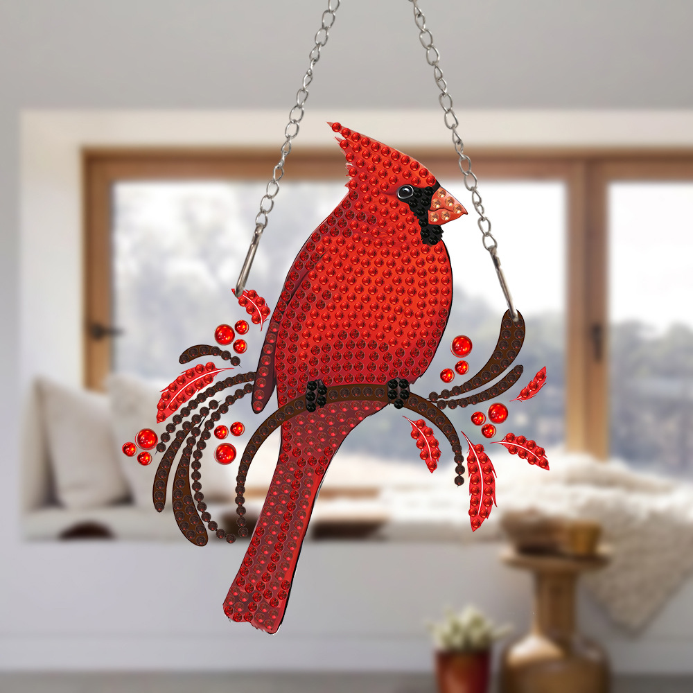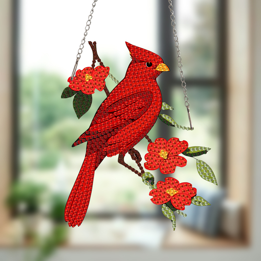 ダイヤモンドの絵の花の枝の上で赤いスズメの鳥の明るいドリルのアクリルは家庭の装飾のdiyのアクセサリを掛けて越境します。