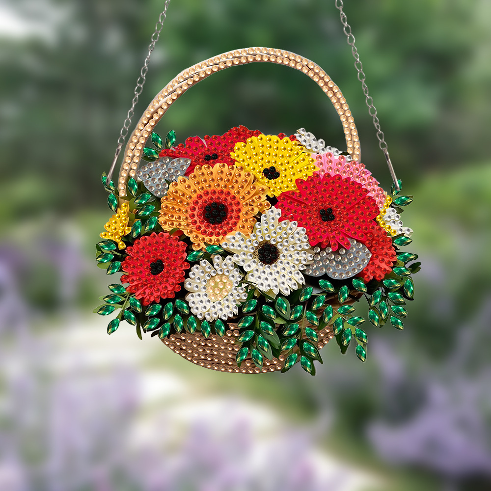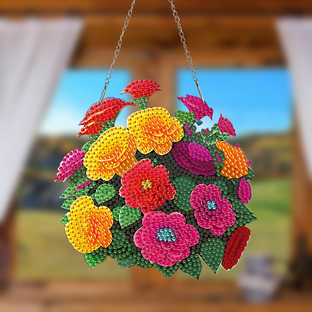 ダイヤモンドの絵の明るいダイヤモンドの異形のドリルの花のかごの中のカラーの花のアクリルは家の装飾を掛けて国境を越えて代行します。