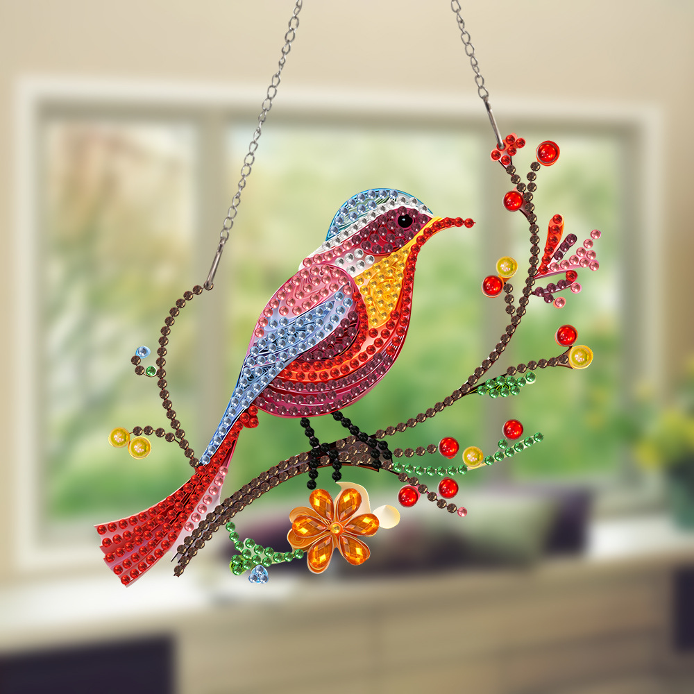 ダイヤモンド画の家庭装飾の枝の上の赤い服の鳥の明るいドリルのアクリルの材質は国境を越えて代行します。