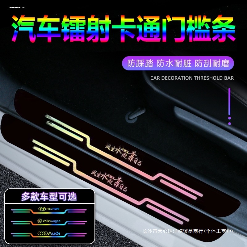 車のドアシル保護ストリップ、アンチステップステッカー、反射ウェルカムペダル、アンチスクラッチストリップ、ユニバーサル装飾用品