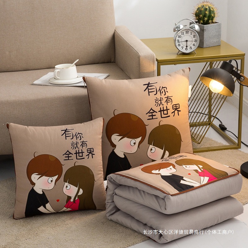 枕とキルトの両用ツーインワン車用折りたたみ枕オフィス昼寝エアコンブランケットクッション厚み