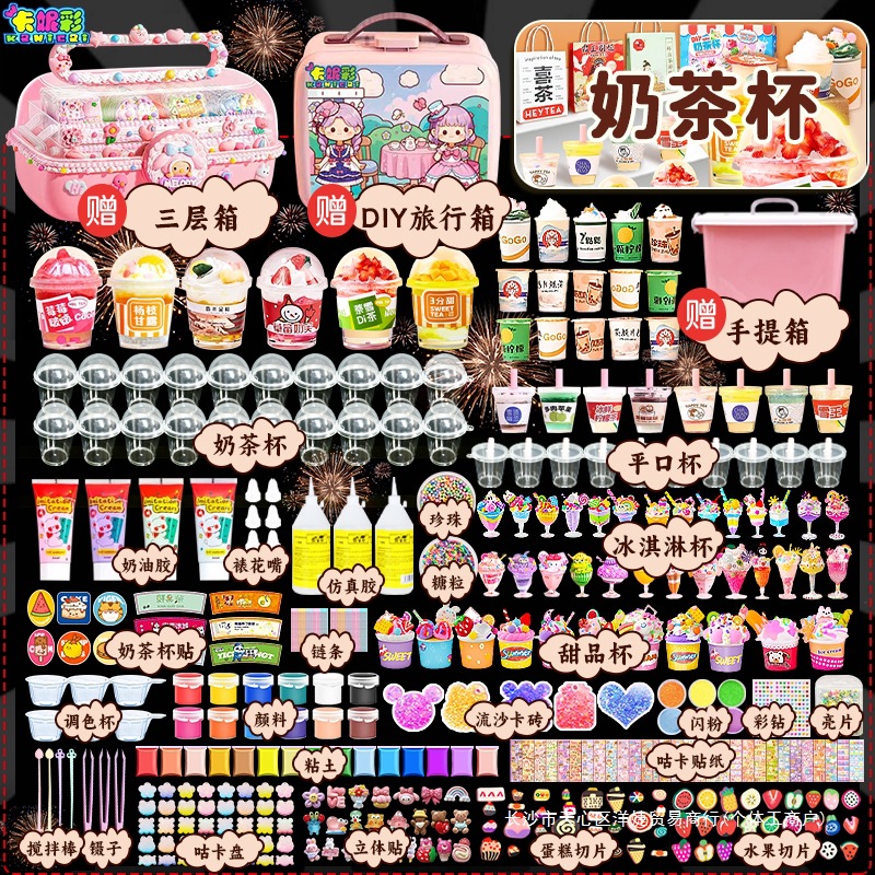 ミルクティーカップ diy 手作りおもちゃクリーム接着剤アイスクリーム材料パッケージセット食品おもちゃ女の子ペンダントクリエイティブギフト