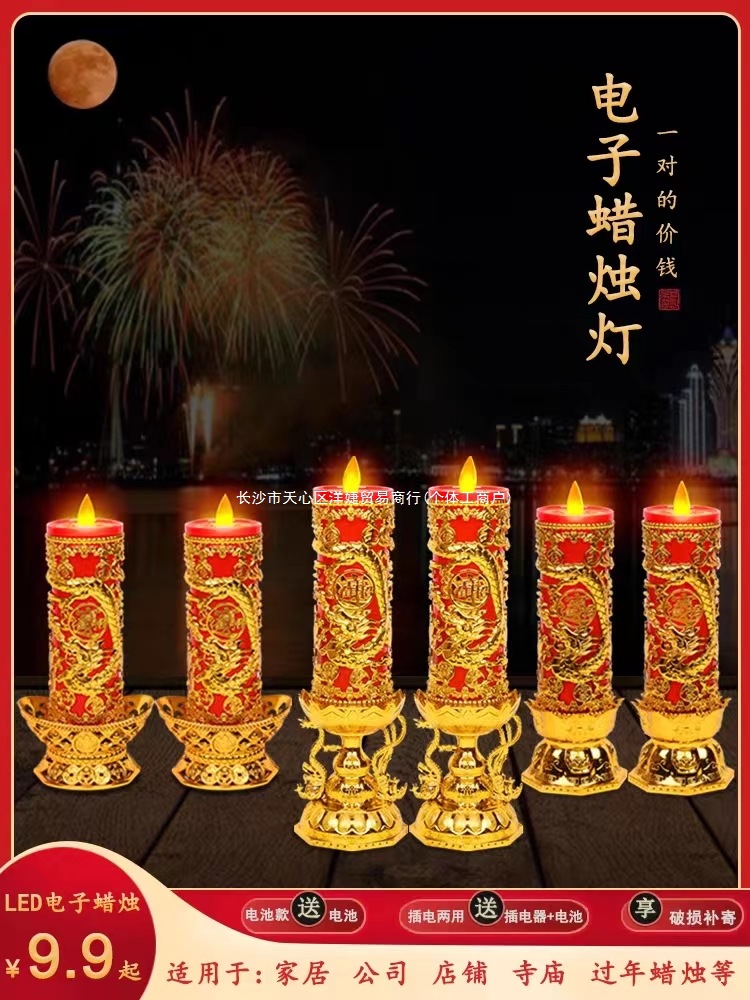 LED電子キャンドルライト、無煙電気キャンドルホルダー、仏陀と富の神、常夜灯、揺れる炎、高輝度、バッテリーで接続可能