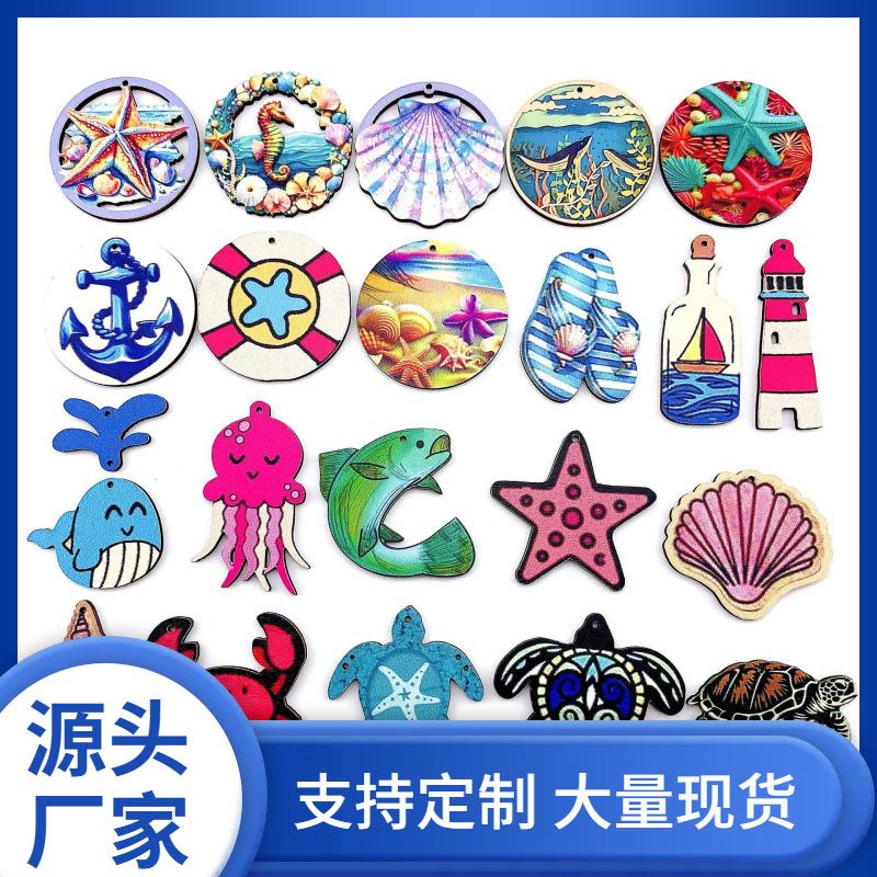 クロスボーダー爆木製カラープリントウミガメ漂流瓶船錨夏海洋ストラップDIYイヤリングキー