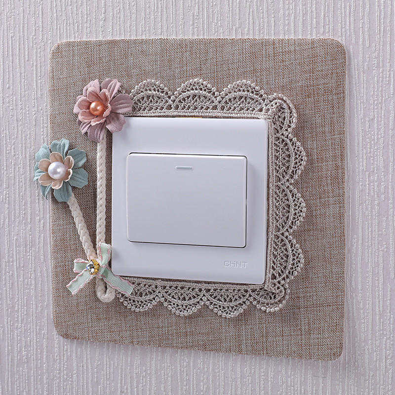 粘着剤不使用のスイッチステッカーヨーロッパスタイルの家庭用装飾スイッチカバーライトソケットステッカーファブリック洗えるリビングルームの壁ステッカー Bao Yiling