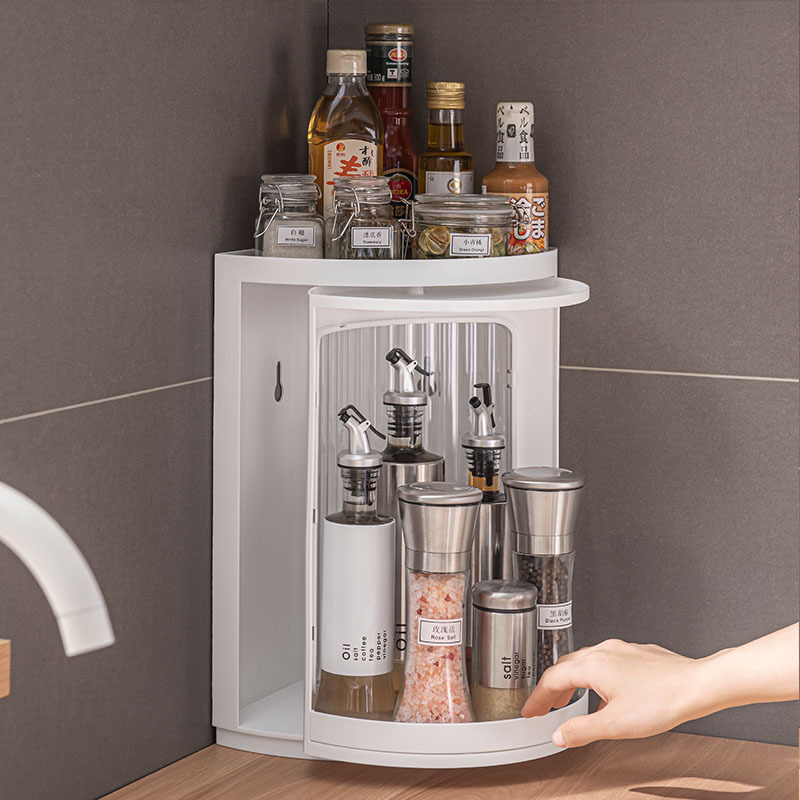 キッチン回転ラック専用カウンタートップ壁掛け三角コーナーキャビネット調味料収納ラックコーナーラック