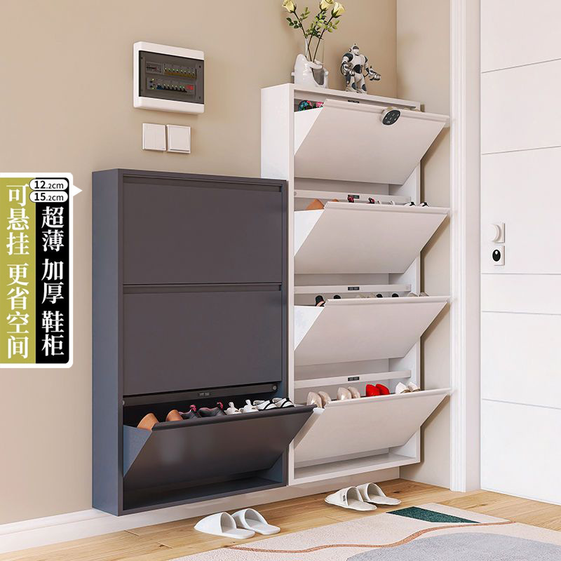 超薄型 12.2 センチメートルスチール製ダンプシューズキャビネットホームエントランス廊下玄関鉄キャビネット多層吊り下げ靴ラック