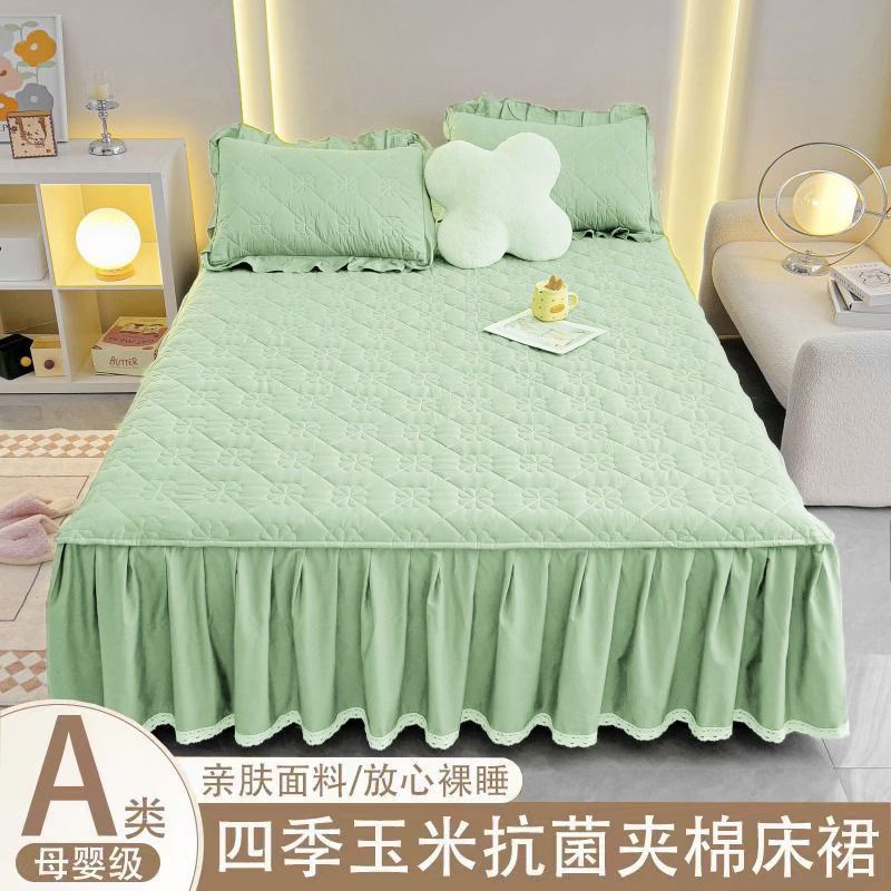 新しいキルティングベッドスカートベッドカバーシングルピース1.5/1.8m 3点セットレースベッドセット滑り止めベッドシーツ保護カバー肌に優しい