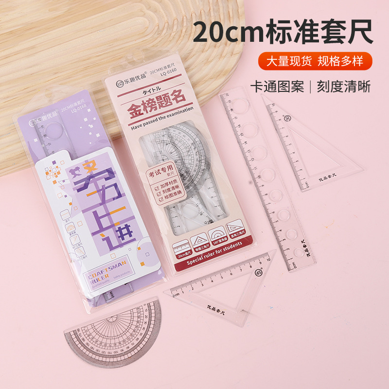 かわいい漫画の定規の学生の透明な20cmの文房具の三角板の定規の測定器の4つのセットは文房具を勉強します。