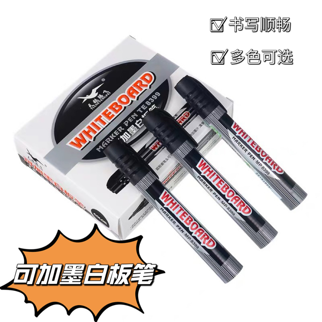 ホワイトボードペンにインクを入れることができます。黒のマーカーのカラー太頭マークの水性大容量ホワイトボードペンです。