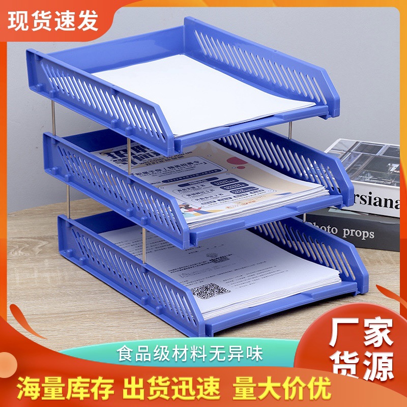 三層書類盤プラスチック透かし彫り収納書類座横式書類籠資料収納棚書類トレー
