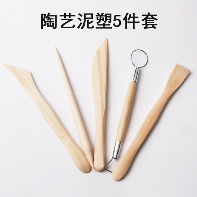 陶泥工具5点セット木質陶芸工具刀手作りdiy泥塑陶磁器多機能彫刻刀修理工