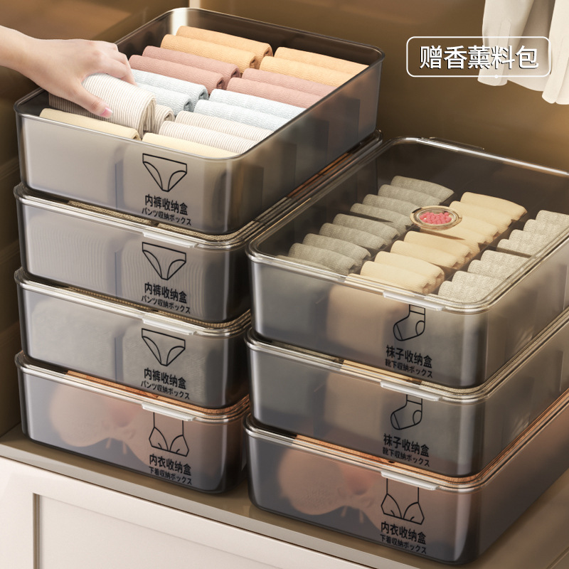 蓋付き下着収納ボックス、家庭用靴下、ブラジャー、整理整頓用品、ワードローブ、下着、スリーインワン