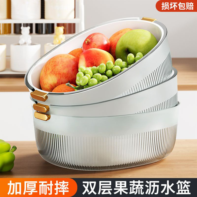 水切りバスケット、食器洗いシンク、キッチン家庭用二層リビングルーム、果物と野菜の洗濯バスケット、米洗いツール、厚いプラスチック製の水切りバスケット